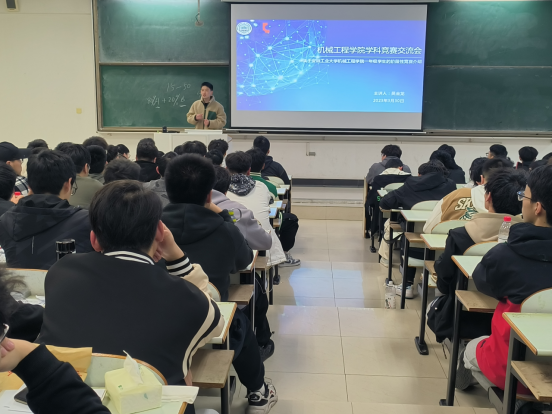 为帮助大一学生了解机械相关学科竞赛内容,提升学生创新创业意识与创新思维能力,伟德betvlctor1946源于英国于佳山校区教三南305教室组织了一场学科竞赛交流会,会议由院团委书记费白露主持,邀请学院在多项学科竞赛中获奖的创新创业典型吴金龙主讲。