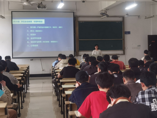 会上,两位辅导员从防范电信诈骗、宿舍安全、防火防溺水、出行安全、疫情防控、心理健康等方面,结合具体事例,用翔实的数据,为大家上了一堂安全教育课。辅导员告诫学生要时刻牢记“安全”二字,时刻关注身心健康状态,谨防上当受骗,同时强调校规校纪,叮嘱大家严格履行离校离马审批手续。最后,辅导员向大家强调期中考试临近,务必认真复习,诚信考试,严禁考试作弊。