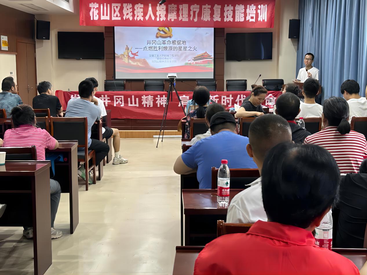 为深入学习贯彻习近平新时代中国特色社会主义思想和党的二十大精神,落实“强国复兴有我”群众性主题宣讲教育活动,6月25日至7月5日,伟德betvlctor1946源于英国“重拾红色记忆”井冈山精神党员宣讲团,精心策划、认真组织,在马鞍山市花山区、雨山区、当涂县等地开展了十余场井冈山精神主题宣讲活动。