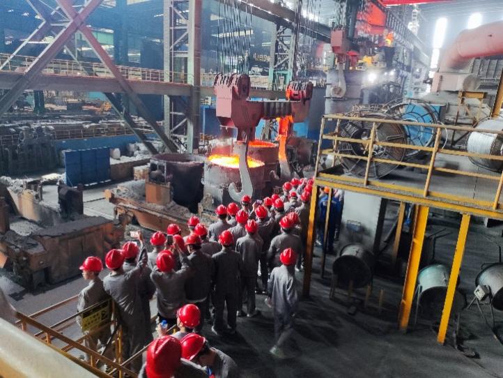 从9月4日开始,实习先后在中天钢铁集团有限公司的炼铁厂、炼钢厂、轧钢厂及南通分公司进行。中天钢铁集团高度重视本次实习,由各分厂负责人亲自协调组织,选派经验丰富的管理和技术人员精心介绍生产工艺流程,深入生产车间现场详细讲解。从槽下筛分、上料到高炉生产操作,从出铁到转炉冶炼、精炼、连铸、出坯,同学们认真观察和学习,踊跃向现场技术人员和带队老师虚心请教,生产工艺了然于胸,理论知识豁然开朗。中天南通公司高度现代化数控中心大厅,整洁先进的轧钢和炼铁生产线,团结战胜一切的企业文化,优美、完备的住宿条件给同学们留下了深刻的影响,全面改观了同学们对钢铁企业的认知,极大地增强了同学们的学习动力和专业自豪感。