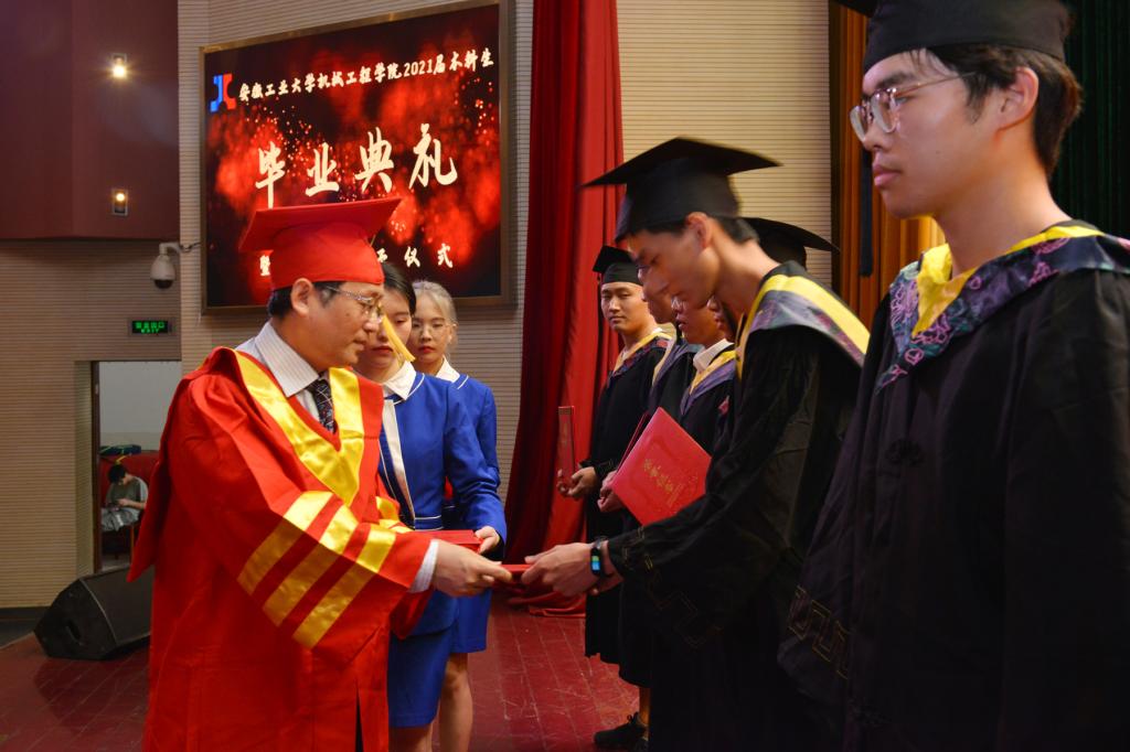 最后,出席典礼的校院领导、教授代表分别前往学位授予台为毕业生们授予学位,为毕业生们一一扶正流苏。典礼在嘹亮的《安工大校歌》中落下帷幕。(撰稿:张敏 审核:李克明)