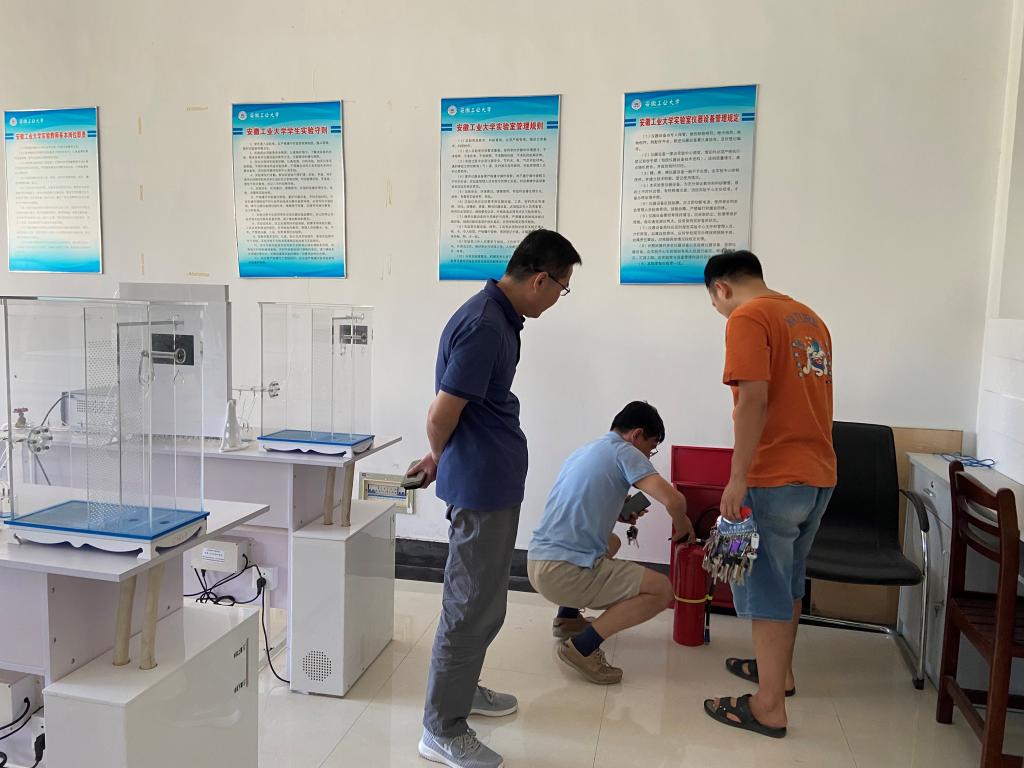 学院领导现场查看了各实验室的设备运行安全、实验室整洁度、危化品的存储及使用、用水用电用气安全以及实验室防盗等情况,并对检查中发现的安全隐患提出明确的整改要求。