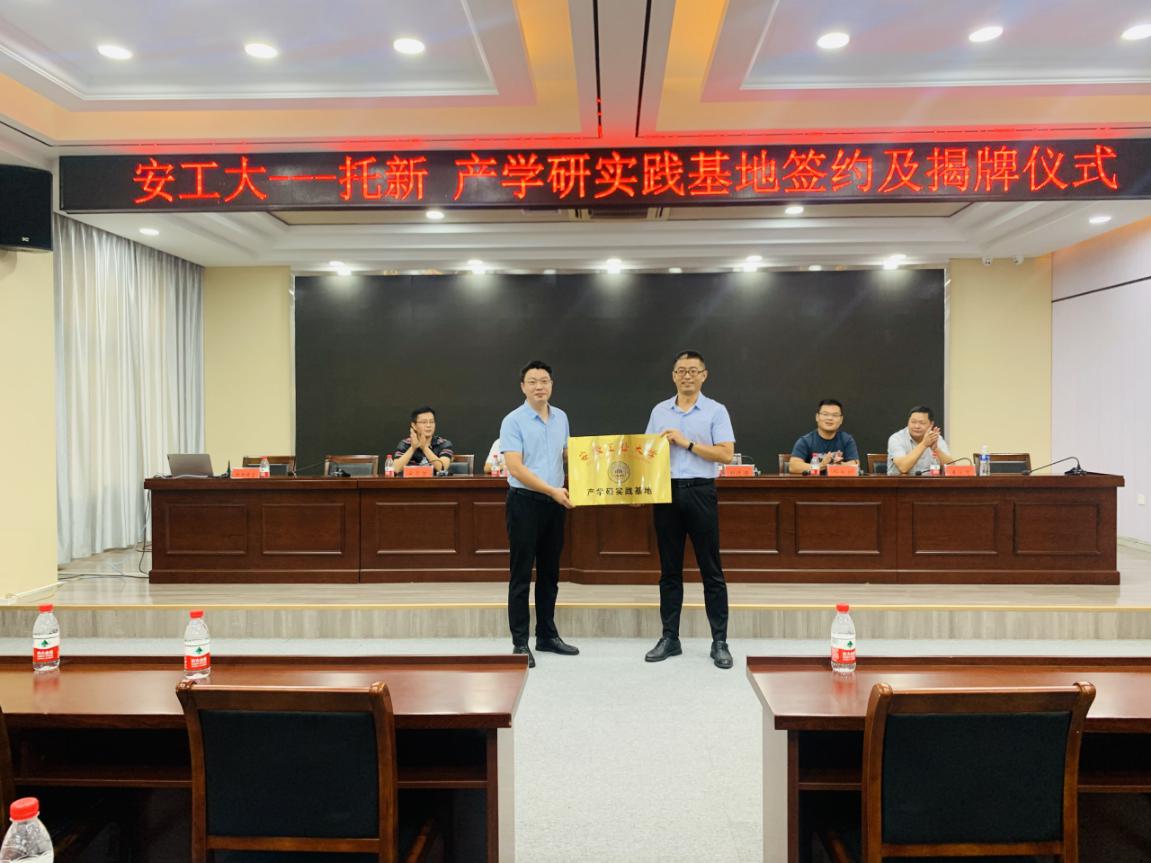 签约仪式上,陈龙宝总经理在致辞中感谢我校对托新公司在技术、人才等多方面的支持。希望双方在人才培养与就业、实习实践、产学研合作和项目申报等方面加强合作,提升企业创新、创造和成果转化能力。郑近德和陈龙宝分别代表双方单位在产学研实践基地协议上签字,并共同为“伟德国际bevictor1946产学研实践基地”揭牌。