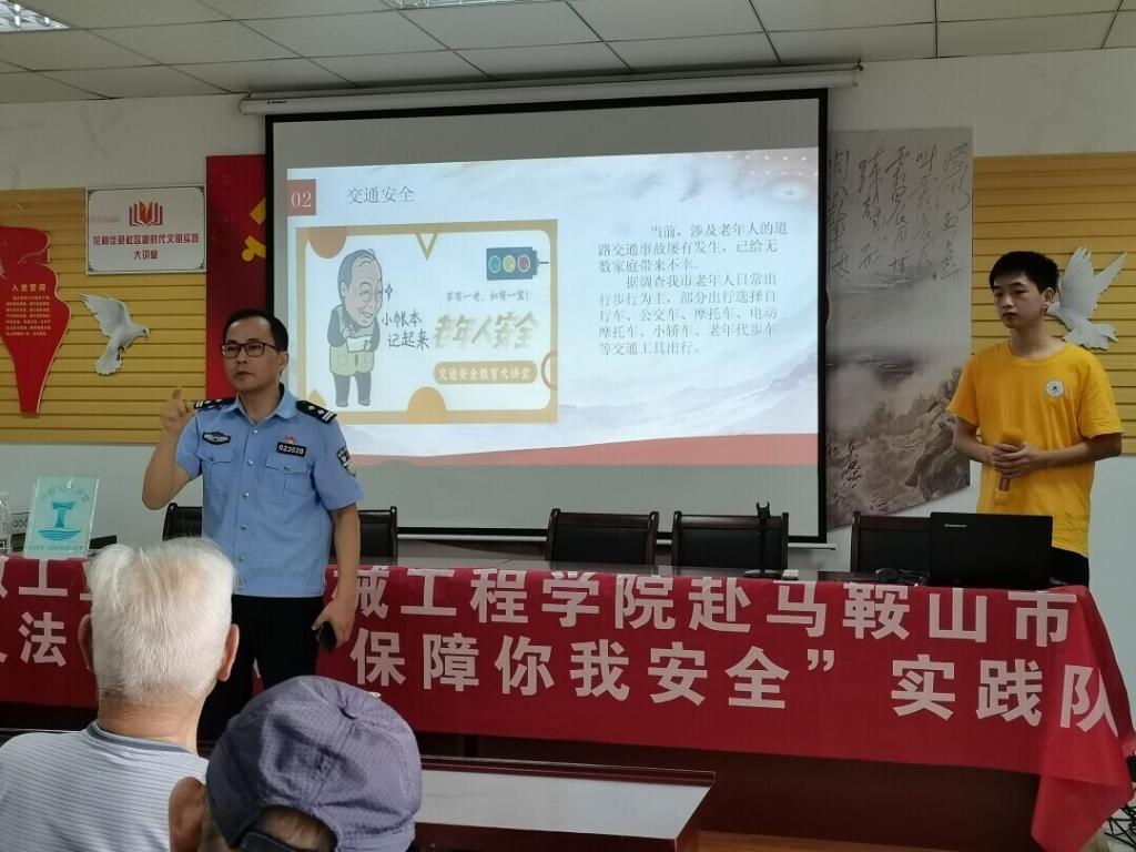 7月16日,伟德betvlctor1946源于英国“普及法律知识,保障你我安全“实践队前往花和佳苑社区,为近三十位老人宣讲交通安全。