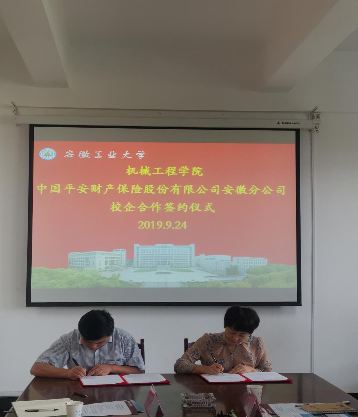 9月24日上午,伟德betvlctor1946源于英国与中国平安财险股份有限公司安徽分公司“校企合作”签约仪式在机械楼302会议室举行。中国平安财险股份有限公司马鞍山中心支公司总经理陈青、中国平安财产保险股份有限公司安徽分公司人力资源部经理孔凡荣、安徽分公司车意理赔部经理吴刚、安徽分公司车意理赔部车物管理团队经理朱佳、安徽分公司人力资源部发展规划室经理方业成、马鞍山中心支公司理赔部经理张永鹏、伟德betvlctor1946源于英国党委书记徐柳根、伟德betvlctor1946源于英国副院长李克明等出席签约仪式。
