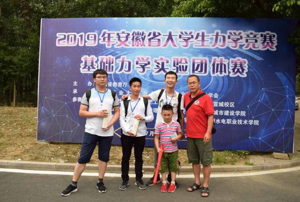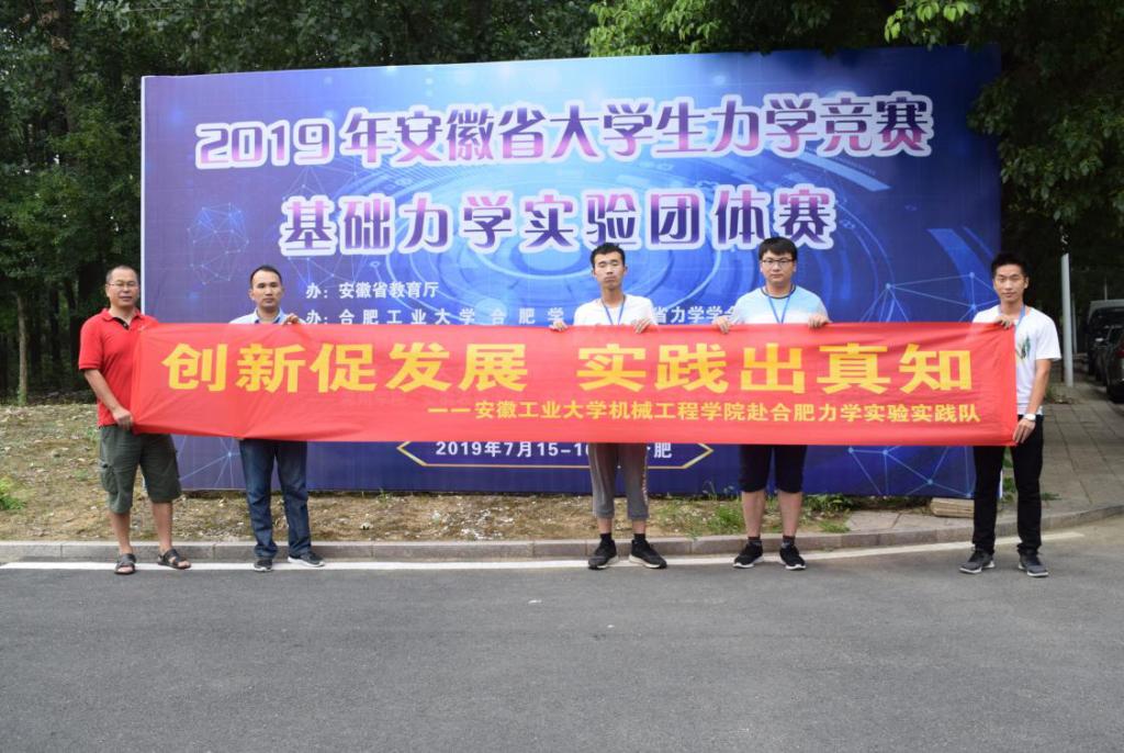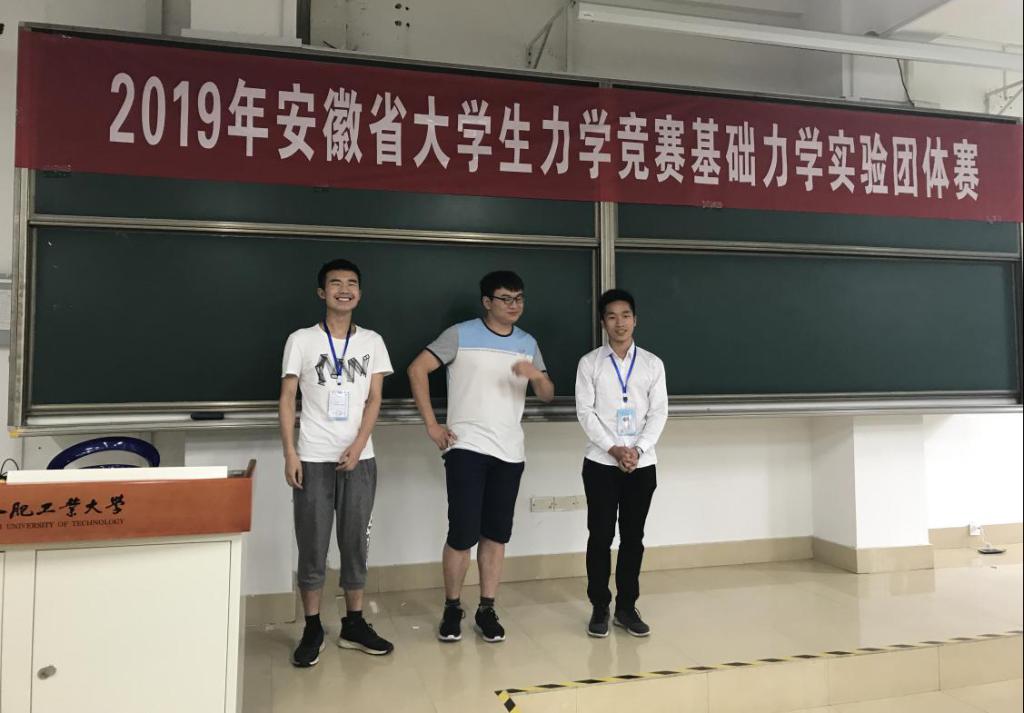 7月15日至16日,“2019年安徽省大学生力学竞赛基础力学实验团体赛”在合肥工业大学如期举行。由伟德betvlctor1946源于英国的李程、周冉、夏昌荣三位同学组成的我校代表队,在与中国科学技术大学代表队等强队的同场竞技中,表现优异,勇夺第一名,荣获唯一的特等奖,实现了历史性突破。我校代表队无论从测试方案设计和实施,还是答辩等环节,无不展现出了安工大学子的独特风采,出色地完成规定的工程测试任务。我校指导教师黄志来和王彪荣获优秀指导教师奖。