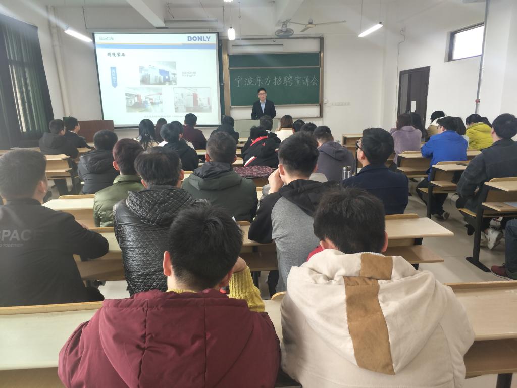 宁波动力股份有限公司创始于1998年,是一家以传动设备、门控系统及工程技术服务三大产业为主体的,多元并进、专业化发展的公司。宣讲会上,技术总监丁经理对企业文化、招聘需求及工薪待遇等进行了细致的说明。会后,宁波动力公司对应聘学生进行了一对一面试。