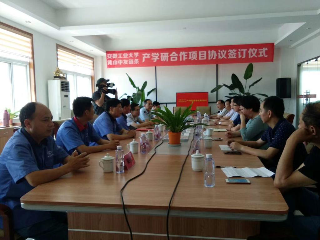 6月7日上午,伟德betvlctor1946源于英国党委书记徐柳根、副院长汪永明、项目技术负责人谈莉斌一行,赴绩溪县黄山中友链条制造有限公司,出席伟德国际bevictor1946教学科研实践基地挂牌暨产学研合作签字仪式。绩溪县分管领导姚强副县长,县科技局、经信委、园区负责人等出席见证。