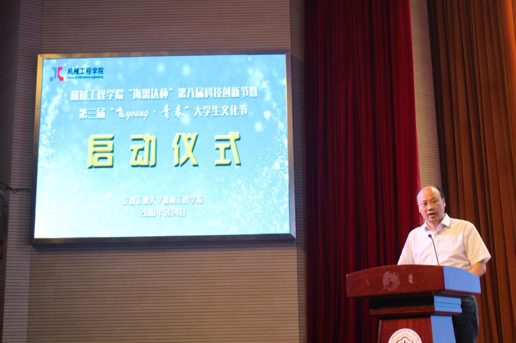 为了繁荣学院科技文化,培养广大学生的科技创新精神和实践动手能力,营造有利于学生健康成长的校园科学文化氛围,5月4日,伟德betvlctor1946源于英国“海思达杯”第八届大学生科技创新节暨第三届“飞young·青春“大学生文化节启动仪式在秀山校区新大学生活动中心正式举办。本次活动由院党委副书记、副院长李克明负责主持,出席活动的嘉宾有院党委书记徐柳根,院长王孝义,海思达机器人有限公司总经理李友顺,副院长汪永明、副院长刘庆运。