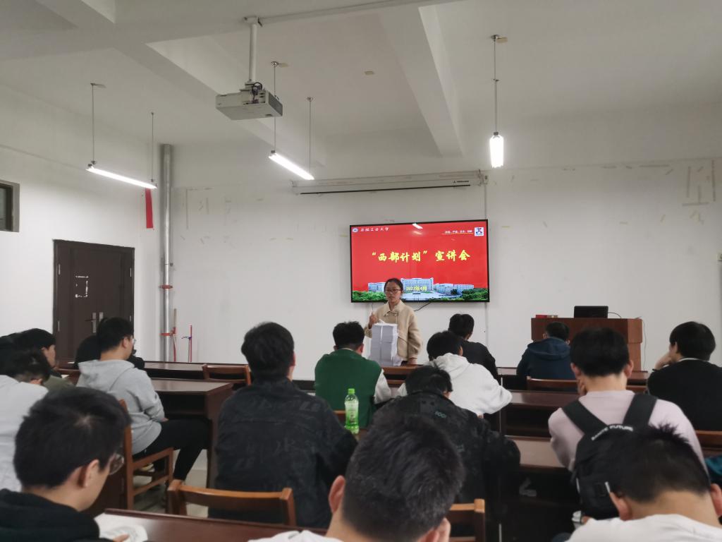 张敏从实施规模、服务内容、地方项目、报名条件等方面介绍西部计划的基本情况,从报名步骤、审核手续、招募流程、身体要求等方面介绍西部计划的报名流程,从岗位选择、服务待遇、服务年限、手续办理、身份证明等方面介绍西部计划的服务情况,从培训时间、培训内容等方面介绍西部计划的培训情况,从就业政策、创业政策、考研政策、考公政策、工龄计算、学费与助学贷款代偿等方面介绍西部计划的政策保障。并以学院2022届成功参加西部计划的毕业生沈洋的优秀事迹为例,向同学们分享他的西部计划历程与心得体会。同时,通过定期转发微信推文、线下一对一答疑等方式,促进同学们了解西部计划的基本情况和相关政策,激励同学们厚植家国情怀,响应国家号召,奔赴祖国西部,将青春的汗水洒在祖国的西部大地上,让青春之花在祖国和人民最需要的地方绚丽绽放!(撰稿:张敏 审核:李克明)