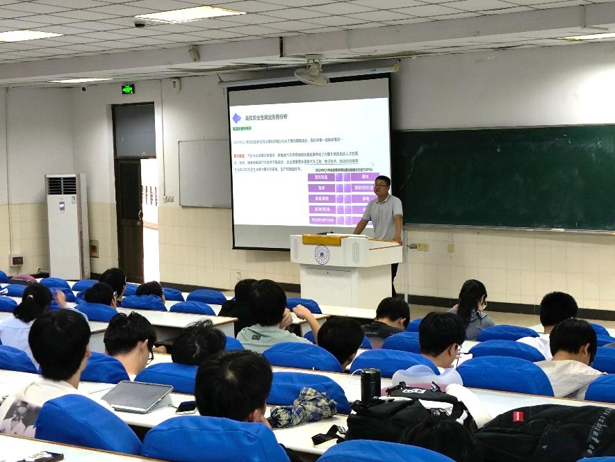 王涛老师围绕就业形势与政策解读、就业准备、求职简历制作以及考研考公创业等四个方面进行了深入讲解。他首先分析了当前高校毕业生的整体就业形势,解读了国家和安徽省的相关就业政策,并结合我校去年毕业生的就业数据进行了具体说明。接着,他建议同学们从思想、知识和能力三方面着手,尽早树立职业规划意识,明确个人职业目标,做好充分的就业准备。在简历制作方面,他详细讲解了简历的基本构成、排版技巧以及如何有效展现个人优势。最后,针对有考研、考公或创业意向的同学,他强调应结合自身实际情况科学规划,避免盲目跟风,同时要坚定信心,保持积极良好的心态迎接未来的挑战。