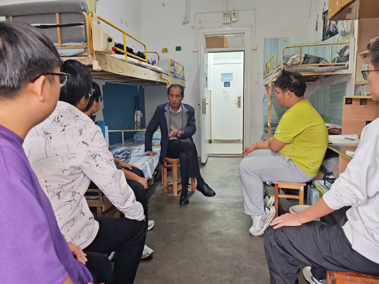 走访过程中,各位老师与新生们进行亲切友好的交流。“家乡是哪里的?”“学校的伙食怎么样?”一句句贴心的话语瞬间拉近了师生间的距离。老师们细致地询问同学们的生源地、入学感受,耐心解答同学们关于专业学习、学科竞赛等方面的疑问,并鼓励他们尽快转变角色,熟悉新环境,融入学院大家庭。