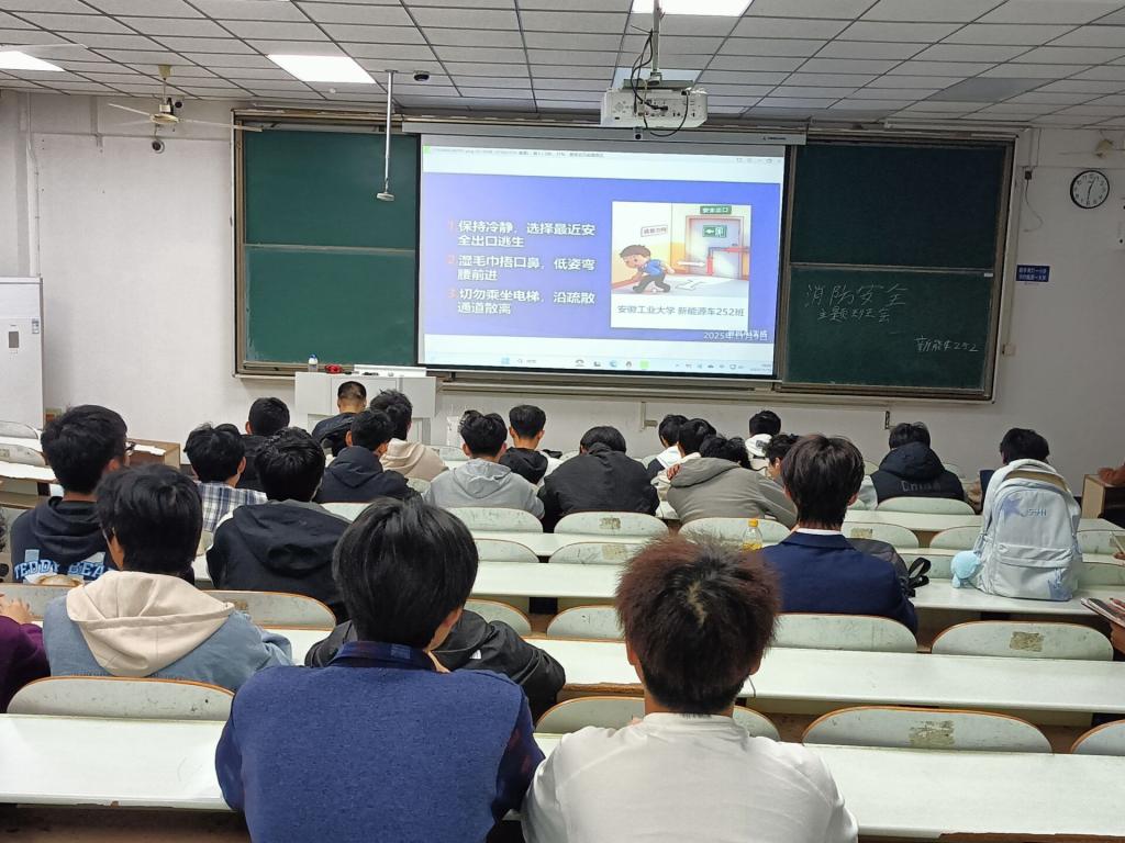 班会伊始,班长们结合校园安全案例,用生动直观的方式讲解火灾成因、常见消防隐患及校园火灾防控重点,强调宿舍违规用电、乱扔烟头的严重危害。随后,通过播放消防安全警示教育片,直观展示火灾肆虐的可怕场景与不当逃生的惨痛后果,让同学们深刻认识消防安全的重要性。互动环节中,学生们围绕“身边消防安全隐患”展开热烈讨论,学生主动分享日常观察到的安全问题,并讨论得出相应整改对策,如“浓烟环境下如何疏散”等,进一步强化了同学们的应急处置思维。最后,班长倡议大家自觉遵守校园安全规定,定期排查宿舍消防隐患,共同打造安全和谐的校园环境。