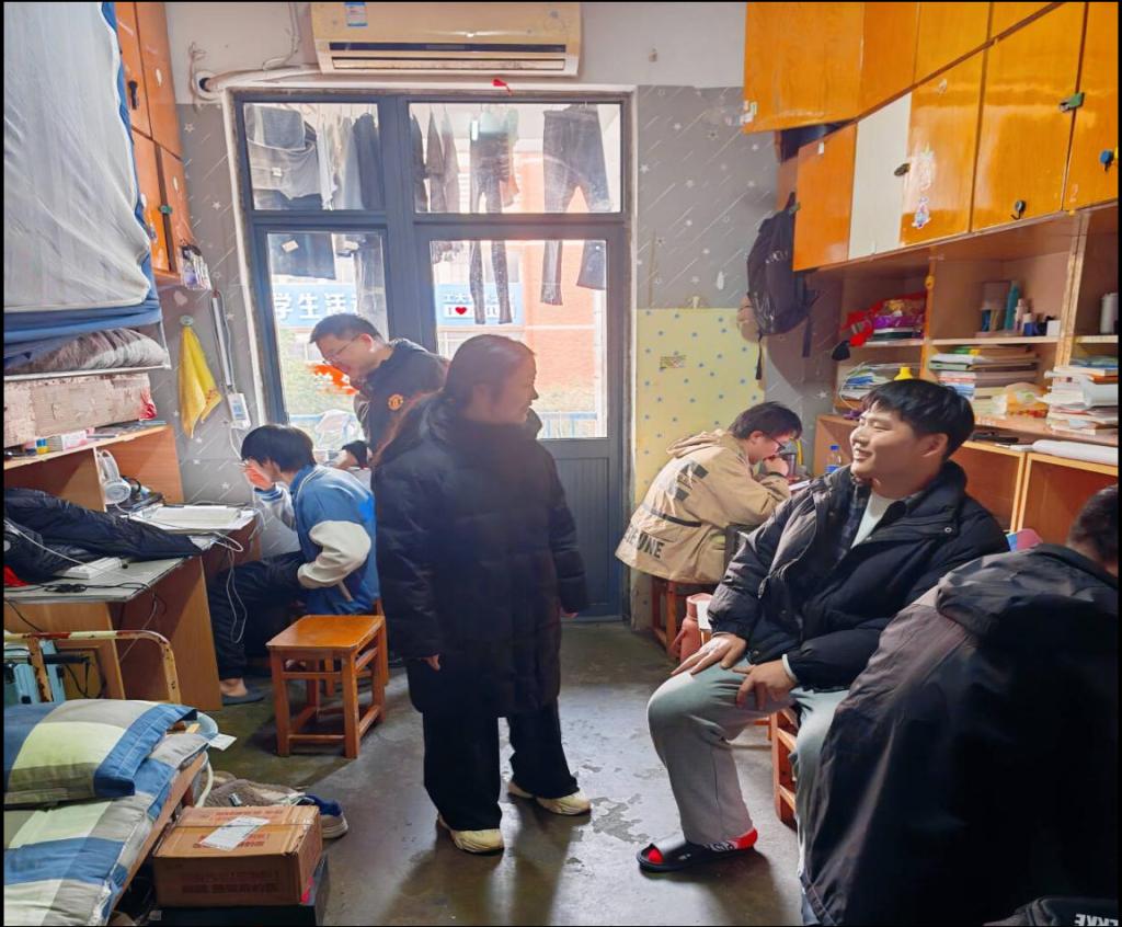 走访过程中,两位辅导员老师重点对宿舍内违规使用大功率电器、私拉乱接电线等问题进行细致检查,并耐心向学生讲解违规电器潜在的火灾风险。同时,辅导员结合校园典型火灾案例,用通俗易懂的语言向学生普及消防安全知识,提醒同学们时刻绷紧消防安全弦,杜绝侥幸心理。针对部分学生存在的消防安全意识淡薄、日常用电习惯不规范等问题,辅导员们现场进行纠正引导,强调宿舍是人员密集场所,消防安全关乎每一位同学的生命财产安全,号召大家互相监督提醒,共同抵制消防安全违规行为。