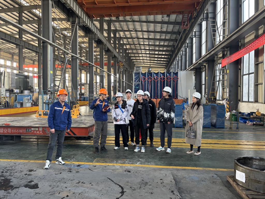 在磁选机制造车间,企业技术人员系统讲解了各类磁选机的工作原理、结构设计与制造工艺。面对正在组装的庞大机身与精密的磁系总成,同学们亲眼见证了图纸上的设计如何一步步转化为实体装备,也对精度控制、材料选型与工艺优化在高端制造中的关键作用有了更深的体会。从重型机架的焊接到“磁力心脏”——磁系总成的精密装配,每一道工序都使书本上的“智能制造”变得真切而生动。