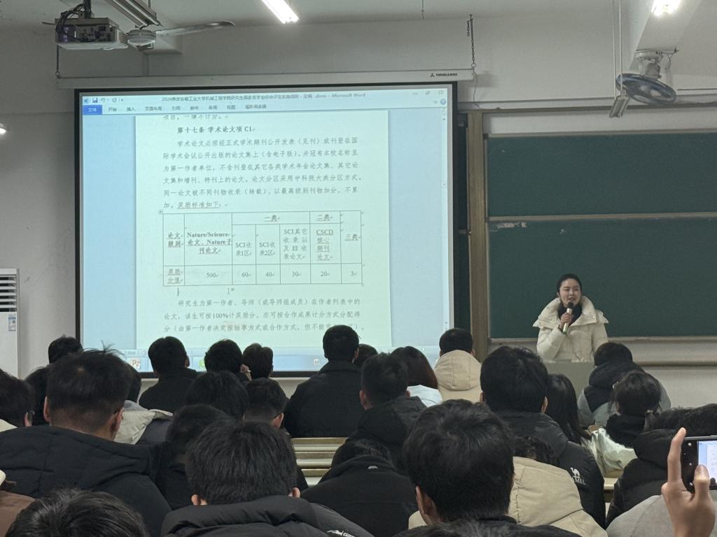 会上,王丹丹首先对2025年学院研究生工作进行全面总结。她从学术科研、文体活动、实践成长三大维度展开,肯定了全院研究生在学科竞赛、论文发表、科技竞赛、就业创业等方面取得的阶段性成果,指出当前部分学生在校园宿舍安全防护、违规骑行电动车、防范电信诈骗、科研进度规划上存在的不足,详细解读了《伟德betvlctor1946源于英国研究生国家奖学金综合评定实施细则(2025年修订版)》的内容。