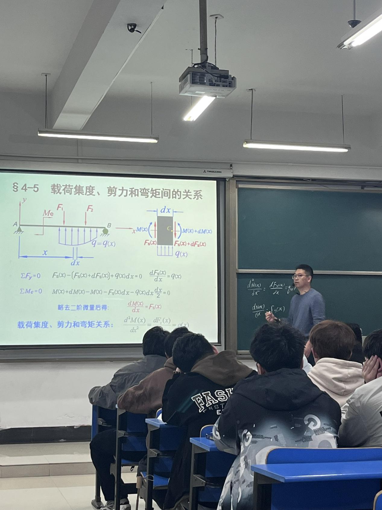 本次公开课由我院胡晓磊老师主讲,课程为《材料力学A》,内容为剪力图和弯矩图的绘制。课堂上,胡晓磊老师以工程结构安全为切入点,着重强调剪力图与弯矩图绘制的严谨性,向学生传递“差之毫厘、谬以千里”的工程敬畏之心,潜移默化培育学生精益求精、严谨务实的工匠精神。同时,他还注重引导学生深刻体会数学与力学知识的贯通融合,让学生明确数学是力学分析的坚实基础,力学是数学知识落地应用的重要载体,着力培养学生的跨学科思维与综合应用能力。最后,他结合我国工程师攻坚克难、自主创新的奋进事迹,厚植学生的家国情怀,强化其职业担当,引导学生牢固树立“科技报国、实干兴邦”的理想信念。