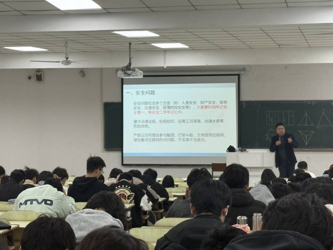 本次安全教育内容全面、重点突出,涵盖防电信网络诈骗、消防安全、人身财产安全、网络安全、交通安全、宿舍安全等多个方面。会上,毕老师结合近期高校典型安全案例,重点讲解了刷单返利、冒充客服、虚假兼职、校园贷、AI诈骗等高发诈骗手段,提醒学生牢记“不轻信、不透露、不转账”反诈原则,守好个人财产安全。同时,围绕宿舍用电安全、消防安全常识、网络文明规范、外出出行安全等内容进行细致讲解,明确禁止违规电器、晚归夜不归宿、沉迷网络等行为,引导学生树立“安全第一、生命至上”的理念。